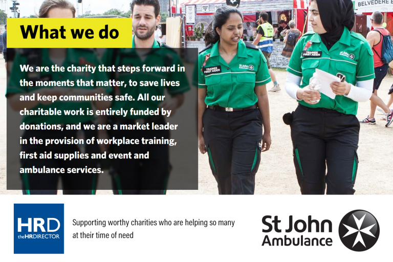 theHRDIRECTOR has announced that St John Ambulance is their next chosen charity to support, following on from previous fund raising for NHS Charities Together, Mental Health UK, Youth Adventure Trust and Send a Cow.