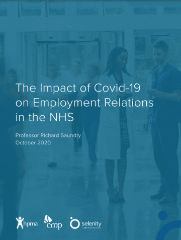 Professor Richard Saundry, one of the UK’s leading experts on workplace conflict, gathered insights from more than 250 NHS Human Resources leaders, senior practitioners and trade union representatives for the report The Impact of Covid-19 on Employment Relations in the NHS, on behalf of the HPMA (Healthcare People Management Association), CMP (workplace relationships specialist) and Selenity (provider of HR and finance solutions).