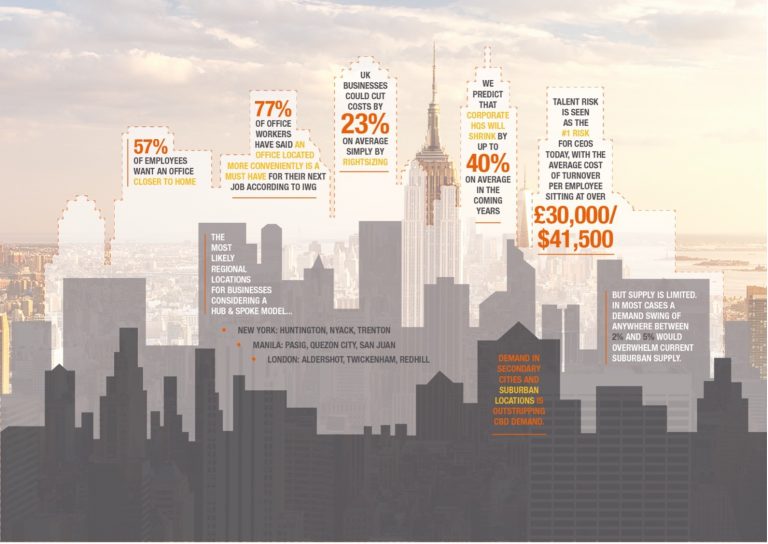 The research found that 57% of employees want an office that is closer to their home. However, if demand for office space in the suburbs and smaller towns across the UK continues at current levels, then supply will run out in 18 months. If just one per cent of city centre workspace demand moved towards the urban “fringe” markets then it would very quickly become saturated.