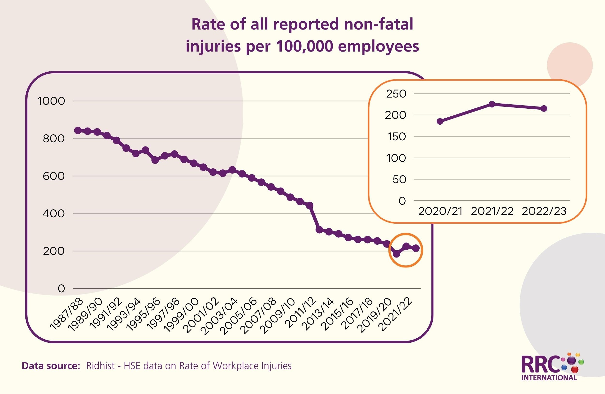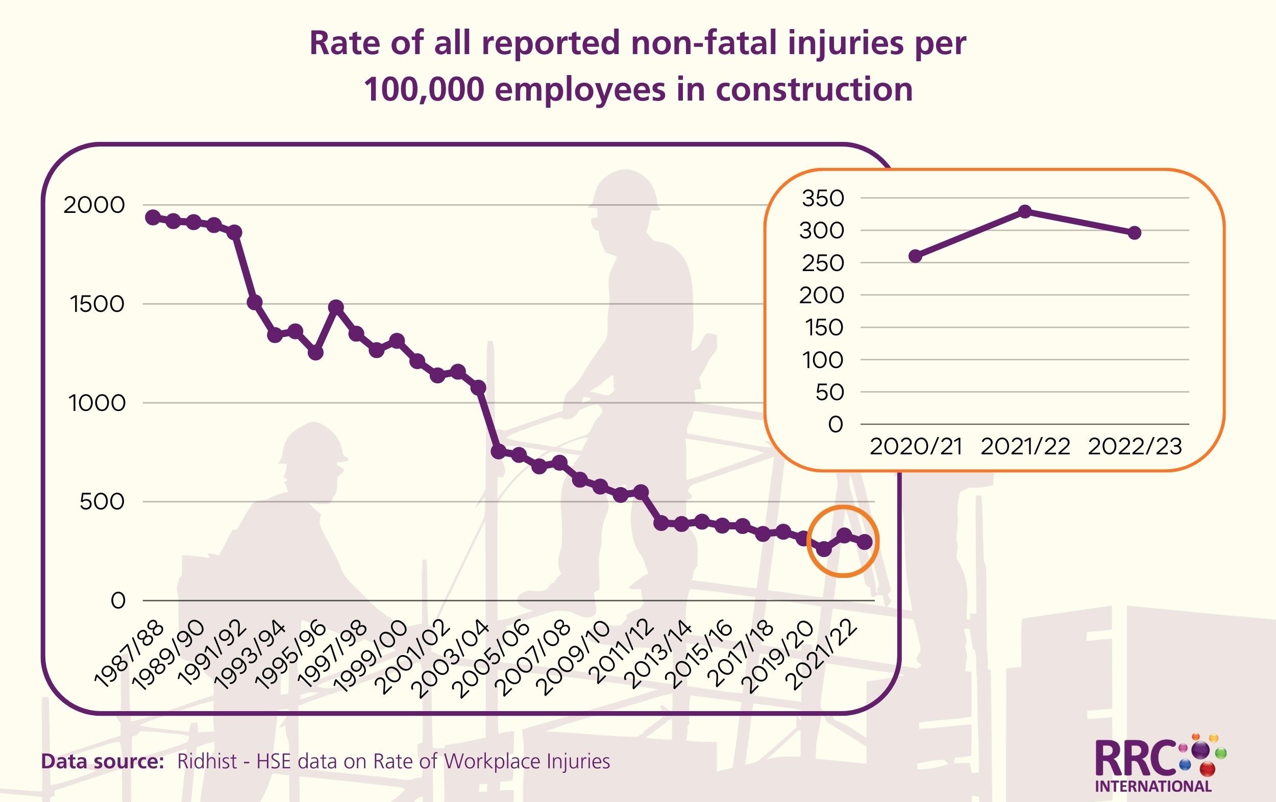 Richard Stockley, Managing Director of RRC, says, “Policy and education have drastically improved the safety of the UK workplace. In the 50 years since the Health and Safety at Work etc Act of 1974, the total number of non-fatal injuries has dropped significantly more or less year-on-year, even in sectors like construction.