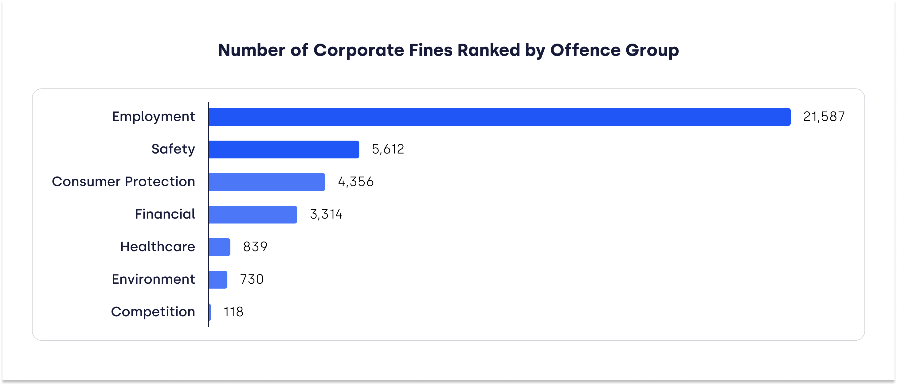 Of the seven different categories analysed, the most common type of corporate offences in the last five years have been employment related.