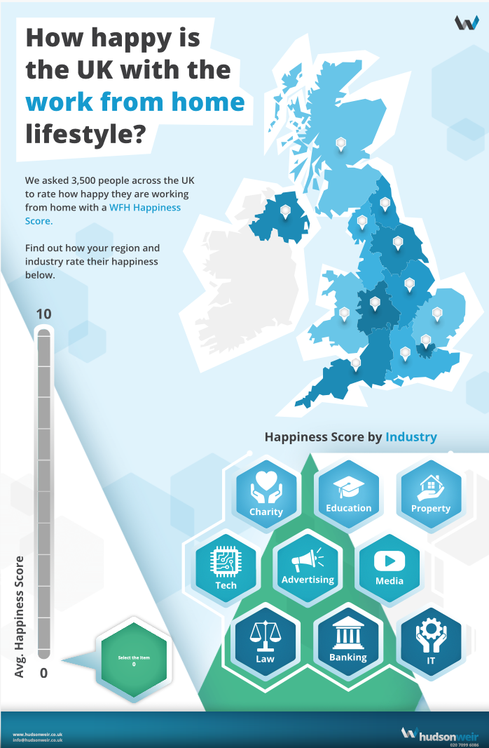 ‘It sounds like productivity and happiness are on the up when people work from home’ says Hasib Howlader from Hudson Weir,’ ‘Perhaps when the worst of the pandemic is over, companies will look at a flexible solution, allowing employees to have the best of both worlds; the convenience of working from home a few days a week, combined with the sociability of being back in the office for the rest of it’