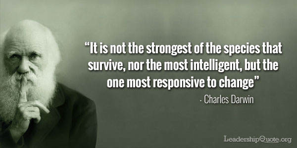 I’ve always loved Darwin’s quote as I believe it is so true for organisations as a whole. The one’s that thrive are most adaptable, and actually in the world we live in today it is not just about being responsive to change… it’s about being the change. Organisations that challenge the status quo, that continue evolving; innovating are the ones that are thriving at the moment.