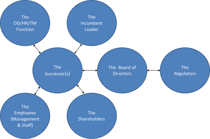The interaction between the successor(s) and the primary stakeholders can be depicted as follows: