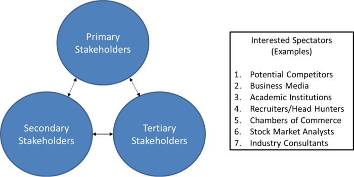 The interrelationship between the three key categories of stakeholders can be depicted as: