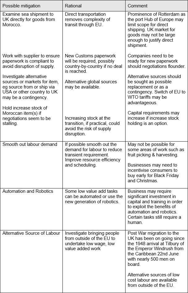 Removal of access to low cost labour from Europe – We need also to consider the free movement of labour in our analysis.  The potential major reduction in the availability of low cost labour from Europe may cause price increases for some goods, either directly or in the supply chain.  This is likely to be noticed most where suppliers have a significant reliance on the use of such labour, either long term or when the need is temporary e.g. fruit picking, harvesting and other peak demands times such as Black Friday and Christmas.