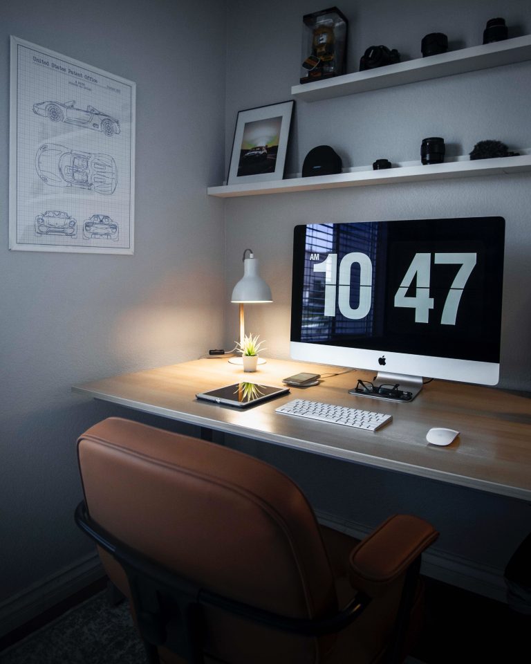 Be comfortable. Ideally it will be set up just as you want it. A comfortable desk, proper desk chair, computer, printer, good lighting, quiet environment, warm and everything you need to hand. Get it right and you can sit down and start working straight away with no time wasted setting it up.