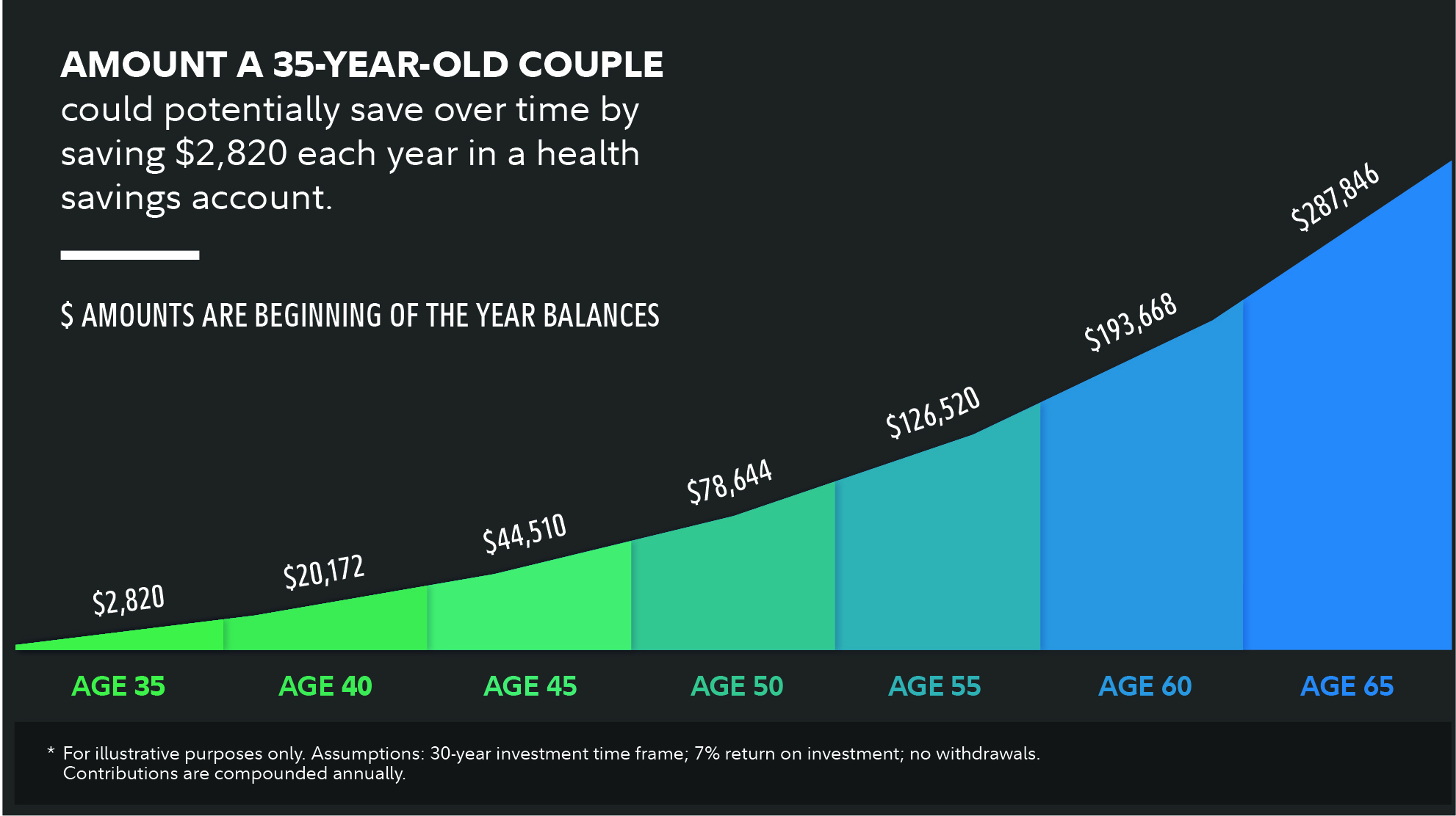 The quantum of this amount is not widely appreciated and few people make adequate provision. It has been estimated, as shown in the chart below, that a couple at the age of 35 could save sufficient to provide for the estimated cost of health care by saving $2,820 per year [5].