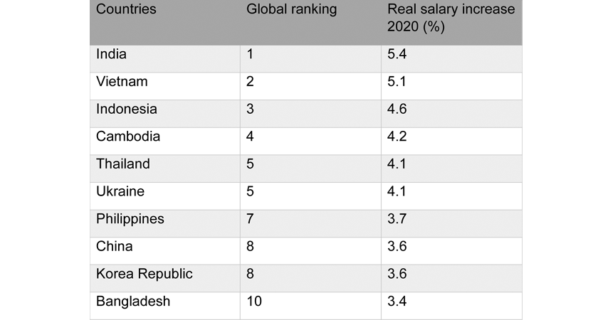 Asian nations continue to lead the way, as Indian employees receive highest pay increase in the world. Asian nations continue to dominate the global top twenty highest real wage increases in the forecast for 2020; 13 of the top twenty, and all but one of the top ten, are Asian countries.