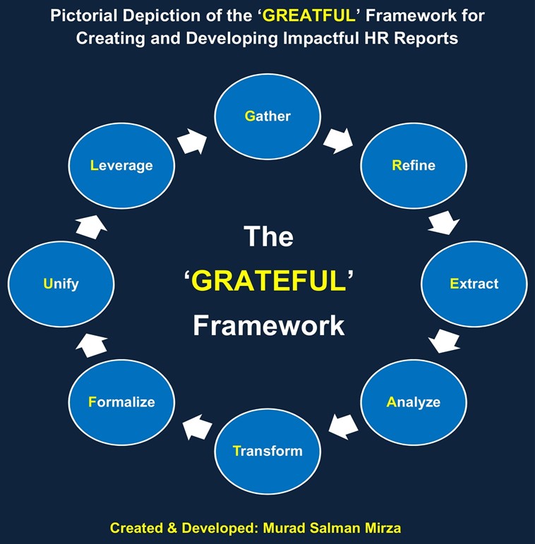 Meanwhile, speaking skills retain their significance in terms of communicating the ‘message’ in a ‘persuasive’ manner, however, they can be rendered ‘toothless’ if compelling reports are not at the vanguard of their advocacy. Consequently, the following ‘GRATEFUL’ framework is being provided to support the HR professionals in creating and developing impactful HR reports that can ‘carry the day’ for them: