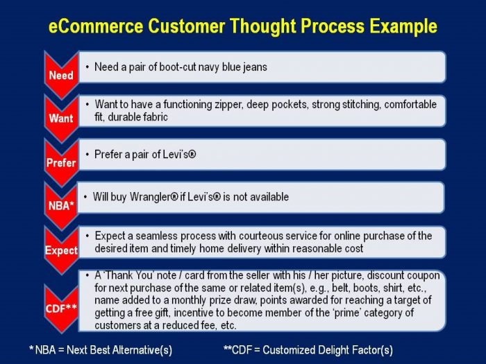 A typical example of a customer’s thought process involved in the purchase of an item from an online shopping site is as follows:
