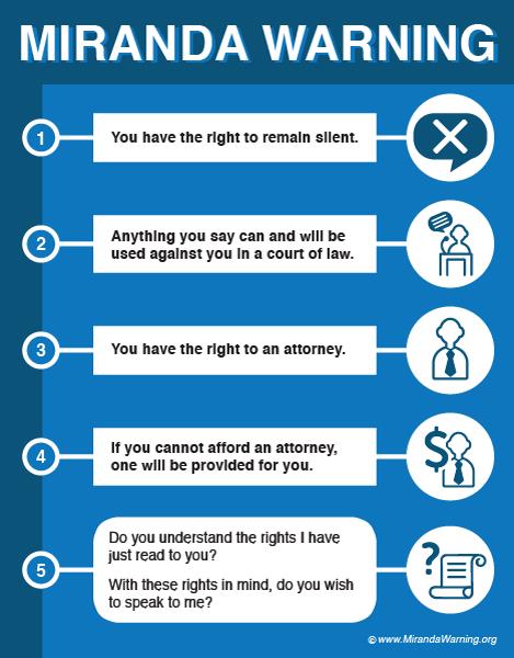 Source: http://www.mirandawarning.org/whatareyourmirandarights.html