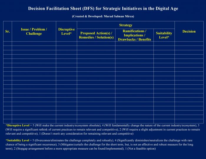 This is a strategic undertaking of prime importance since the very future of the corporate entity is at stake in the unforgiving, uncompromising and unrelenting nature of the Digital Age.  Consequently, the following tool can be used to make profoundly insightful and prudently sound decisions: